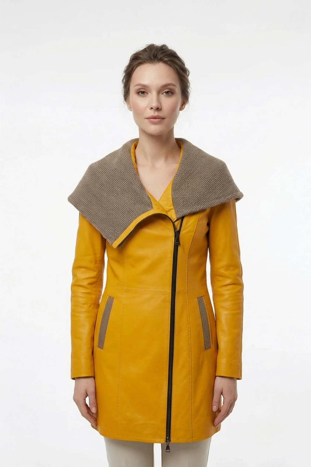 Rhizus’un Zarif ve Şıklığı bir arada sunan Koletsa Kadın Sarı Uzun Deri Ceket ile tarzınızı konuşturun. Ürün Bilgileri